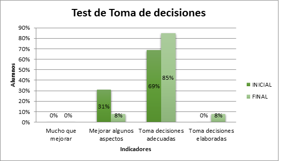 de toma de decisiones, aplicado a 13 estudiantes del bachillerato abierto de 16 a 19 años.